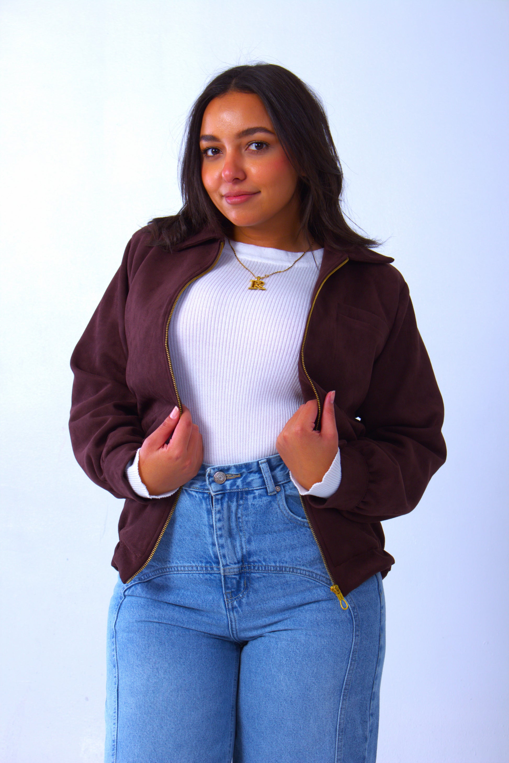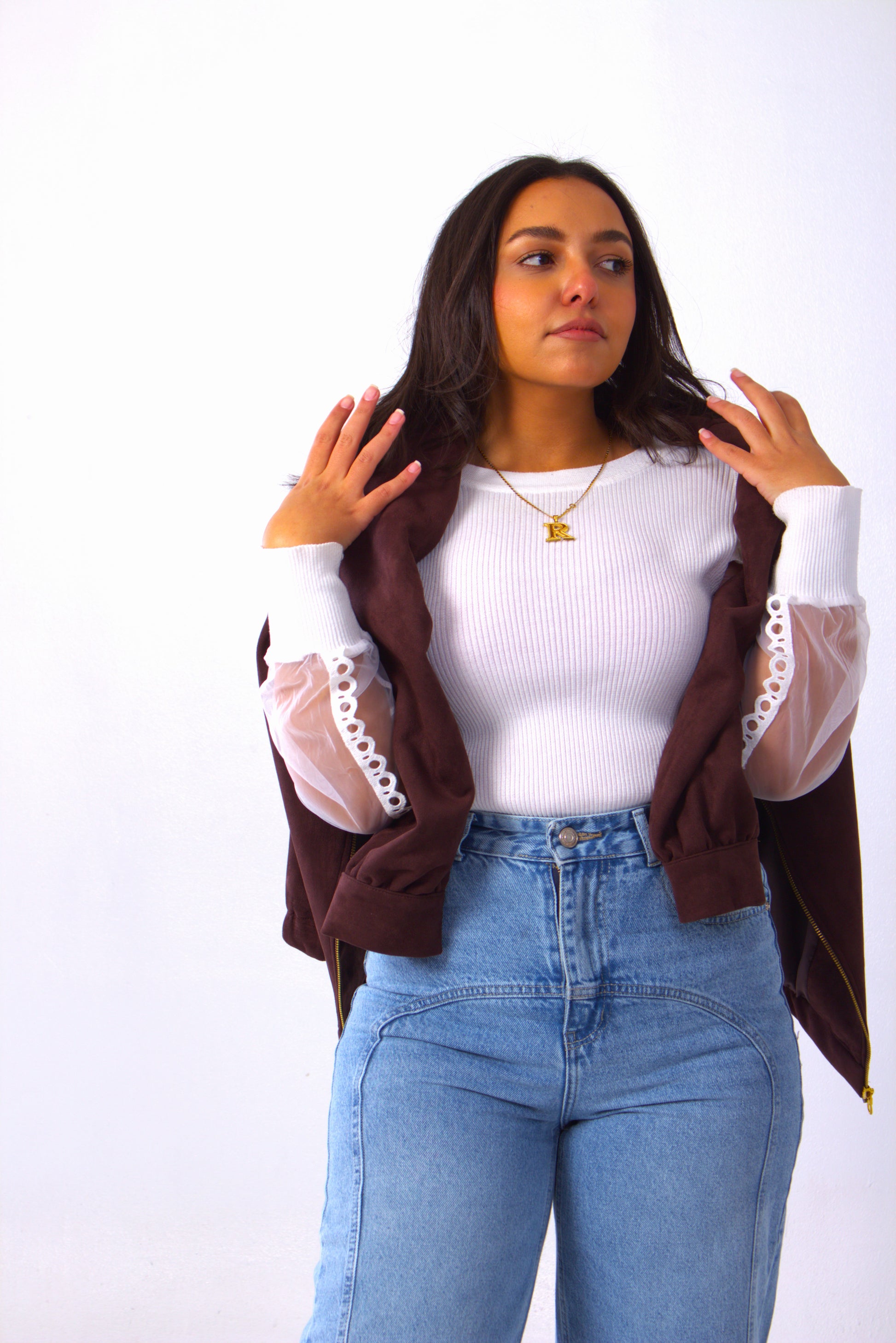 A refined Brown jacket with a minimalist aesthetic and functional buttoned sleeves.