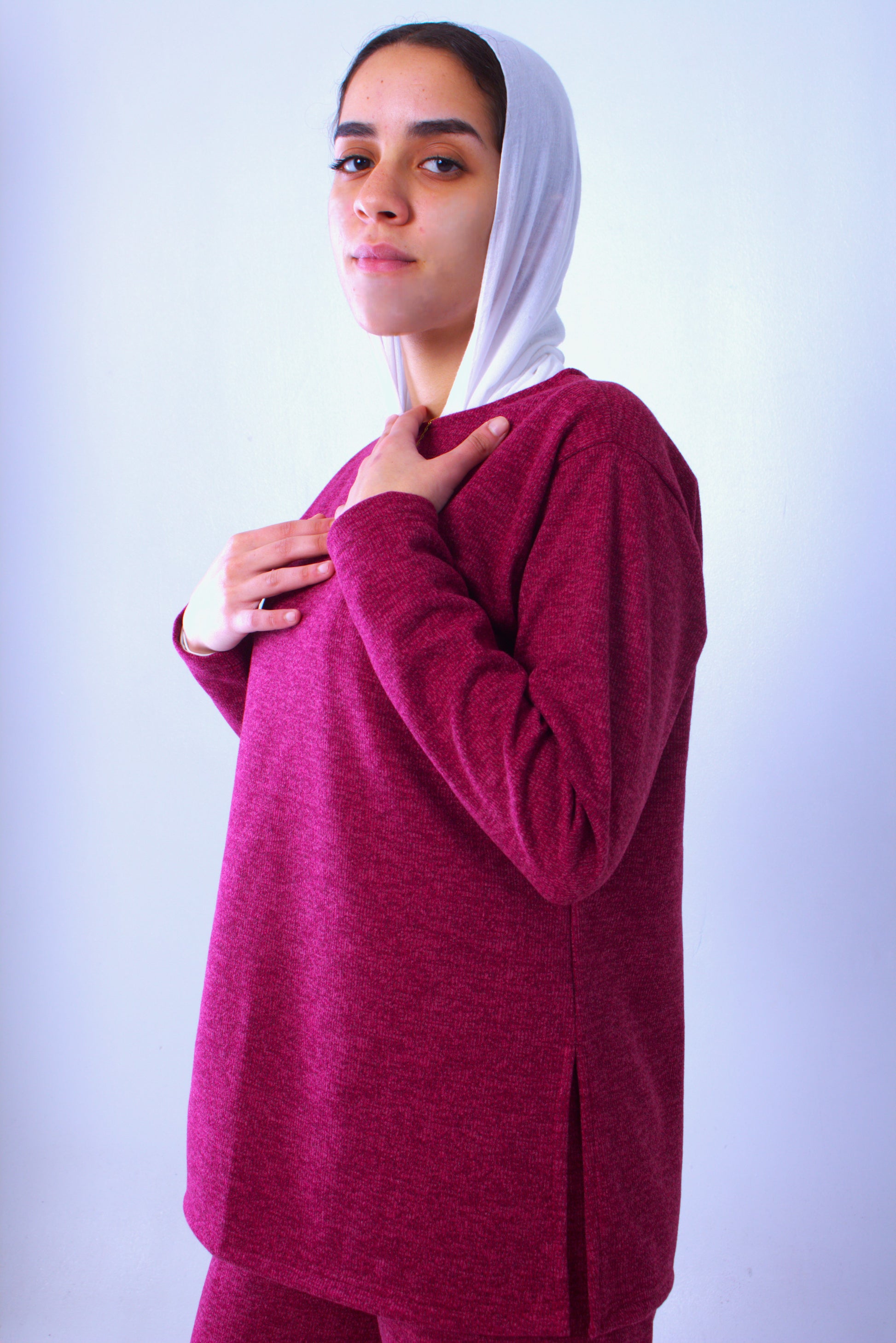 Warm Hug Top in soft mohair material.
